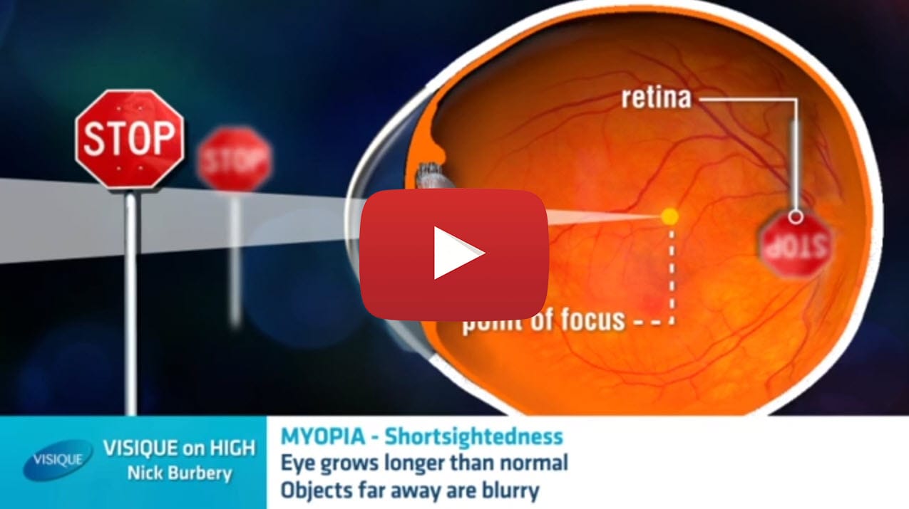 Myopia — or short-sightedness — refers to poor distance vision but clear near vision. This occurs when the eyeball grows too long in relation to the power of the eye’s lenses. The light rays then focus at a point in front of the retina, rather than directly on its surface.